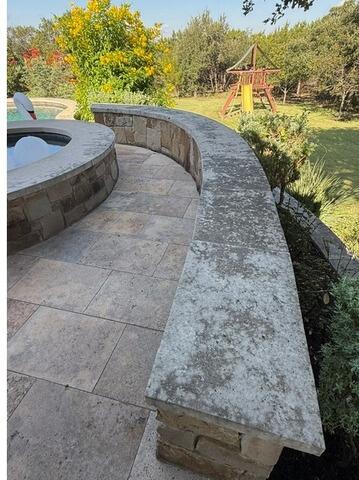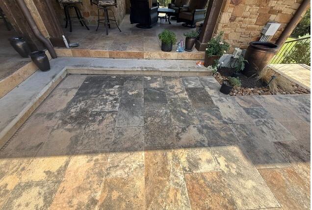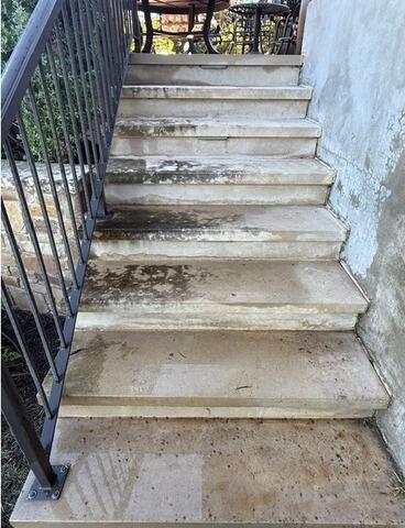 Pool deck stairs, retaining walls and retaining wall capstones can be very beautiful when clean. Often times they can become very dirty due to the high traffic and constant moisture from pool water and being sat on with wet bathing suits. That moisture enables dirt, grime and algae to attach itself to the pool deck stone surfaces and surrounding walls. This can make for slippery surfaces. Utilizing our soft wash process and proprietary solutions we are able to lift the grime, dirt and algae on pool decks safely. Regardless of the surface, our technical application combined with our family of cleaning products will not only clean but brighten your pool deck stairs, retaining walls and capstones.