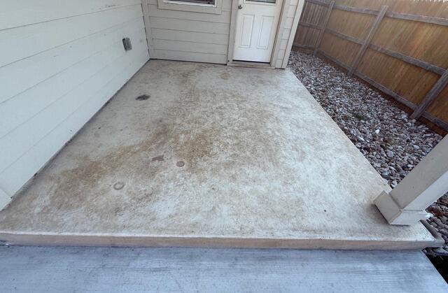 Concrete front entrances and back patios are very susceptible to dirt, grime and algae. This is due to high traffic and in this case also dogs. By applying our proprietary solutions in a three-step process we are able to lift that dirt and grime. First, we apply a pretreat and allow the solutions to attack the surface to loosen the dirt and grime. Second, using our commercial grade surface cleaner that utilizes volume of water and pressure. We are able to deep clean the concrete and lift the dirt and grime from the surface. Lastly, we post-treat to give it a brighter and longer lasting clean look.